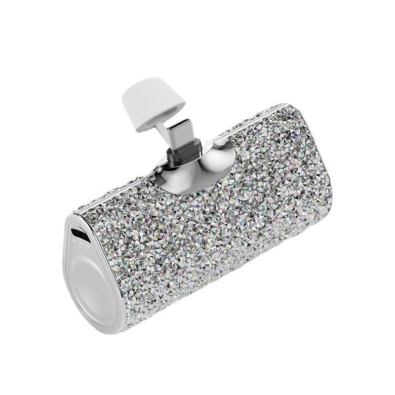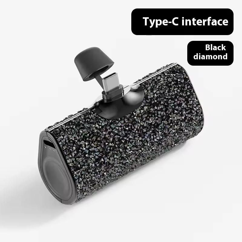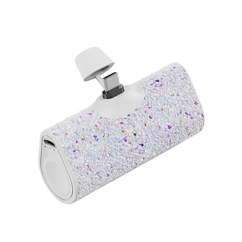 Mini Banco de Energía Compacto con Incrustaciones de Diamantes de Resina, Carga Rápida de 12W, 5000mAh, Portátil de Bolsillo, Elegante y Brillante