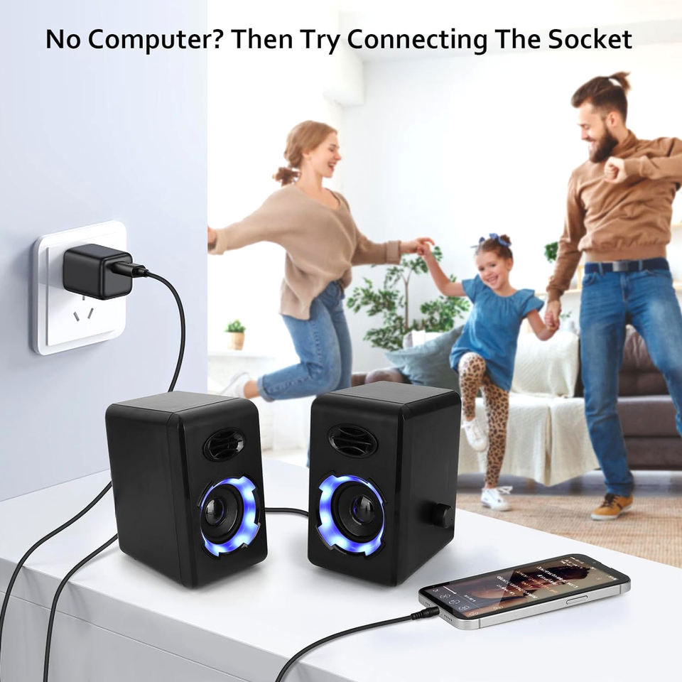 Mini altavoces para computadora Altavoz pequeño para computadora portátil de 10W con luz RGB Altavoz de escritorio alimentado por USB con control de volumen