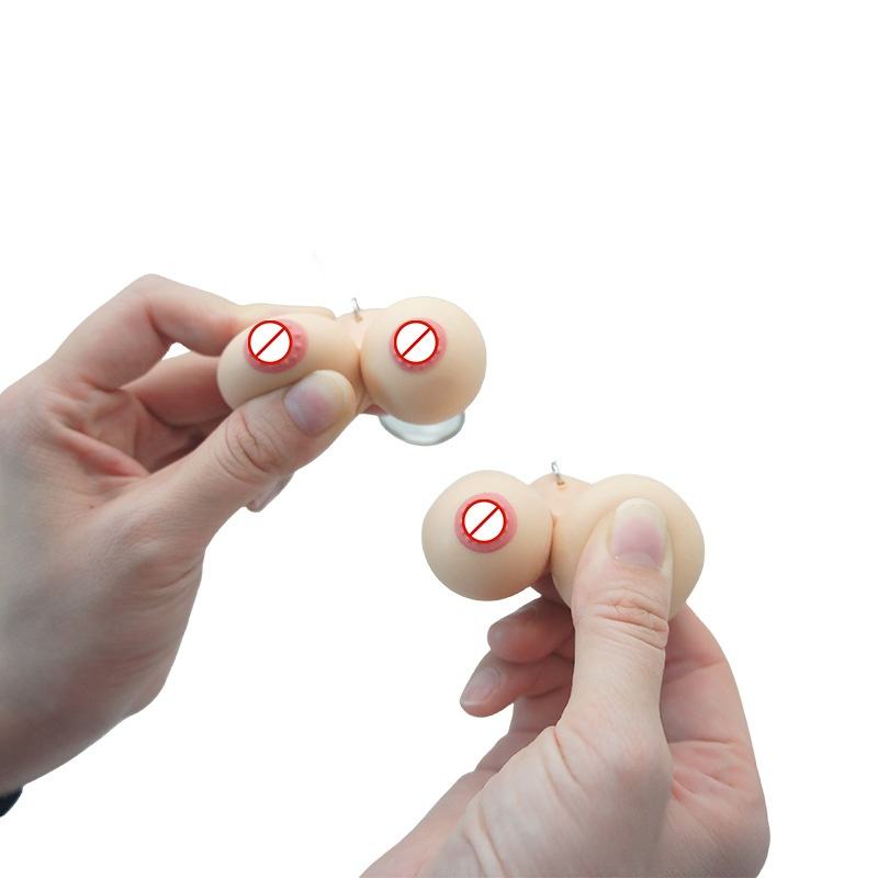 Mini Juguete Divertido con Forma de Senos, Juguete Antiestrés de Silicona, Simulación de Senos, Llavero con Forma de Senos