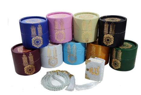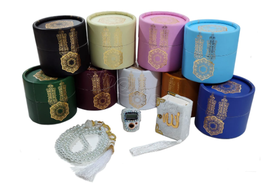 Mini Caja Cilíndrica con Corán, Set de Regalo, Material de Peluche de Dibujos Animados, Rosario Electrónico de Perlas, Opciones de Piedras, Logotipo Personalizado, Regalo de Ramadán-AGUNGROUP