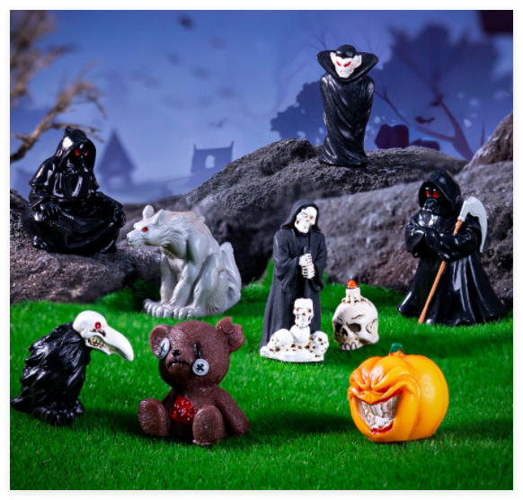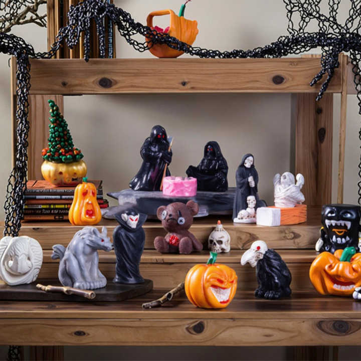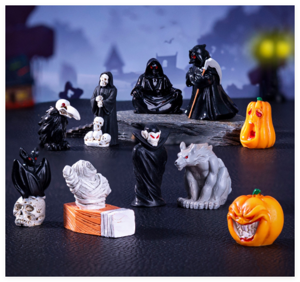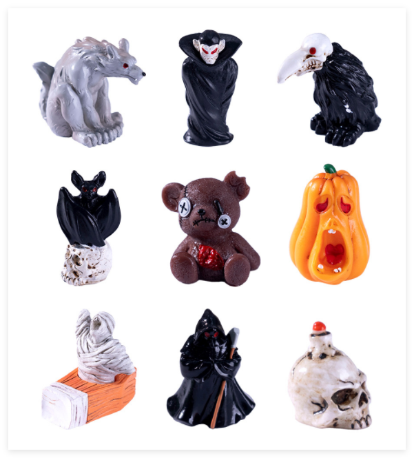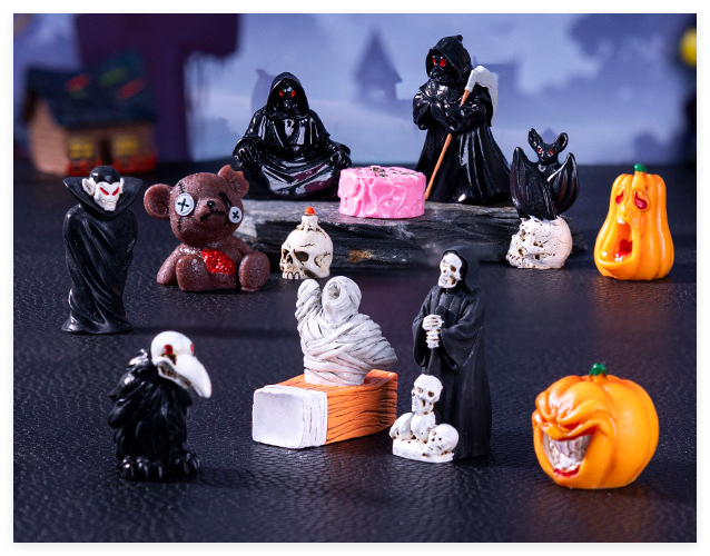Mini DIY artesanías de resina de Halloween estatuilla de pájaro Castillo de la muerte y fantasma Micro paisaje jardín figuras horribles estilo en miniatura