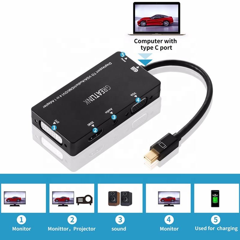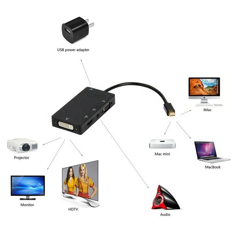 Nombre del producto:4 En 1 mini DP al adaptador del audio de VGA HDMI DVI
