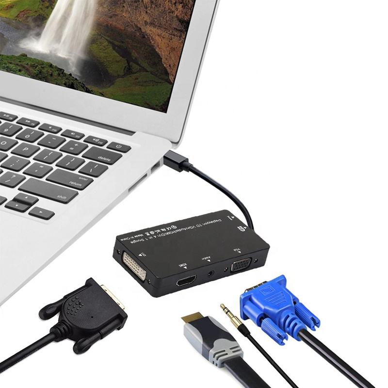 4 En 1 mini DP al adaptador del audio de VGA HDMI DVI