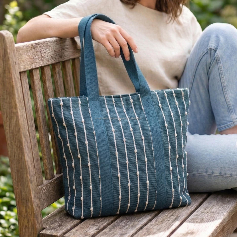 Bolso de Hombro Grande con Diseño de Mini Diamantes Tejidos a Rayas, Multicolor, Trenzado a Mano con Asa de Cuerda Doble, para Uso Casual