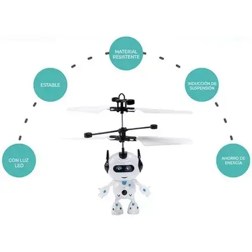 Mini dron esférico volador con luces LED y sensores manuales