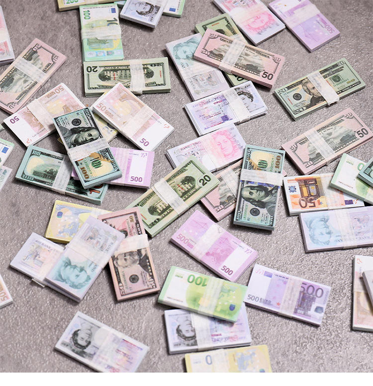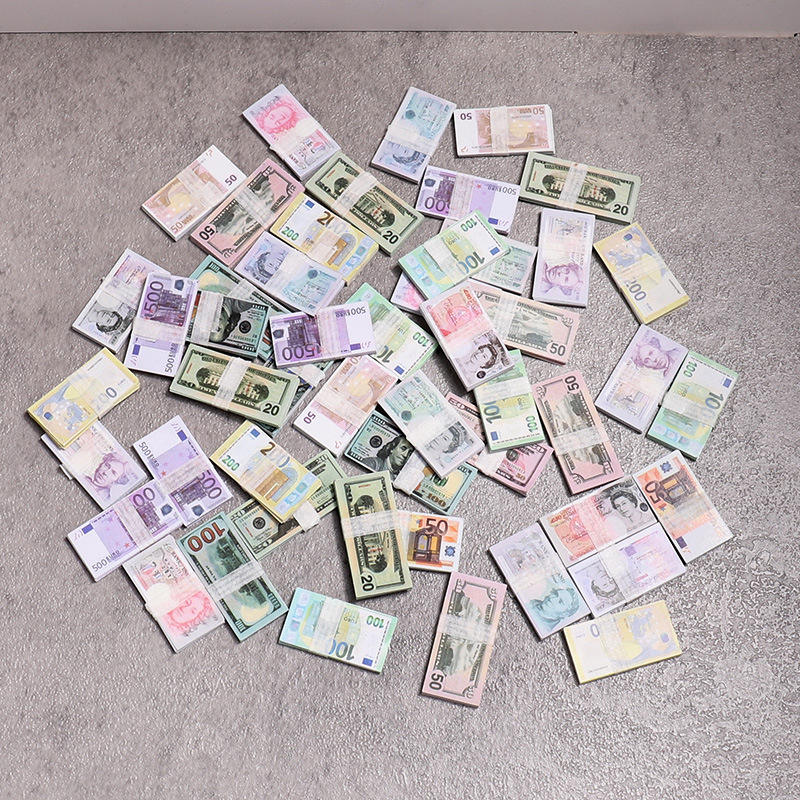 Mini Billetes de Juguete Realistas de Alta Calidad y Ecológicos, Accesorios de Papel Moneda de Dólar, Euro y Libra Esterlina para Fiestas