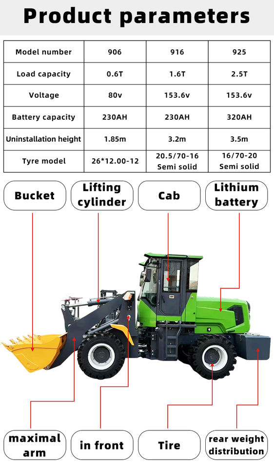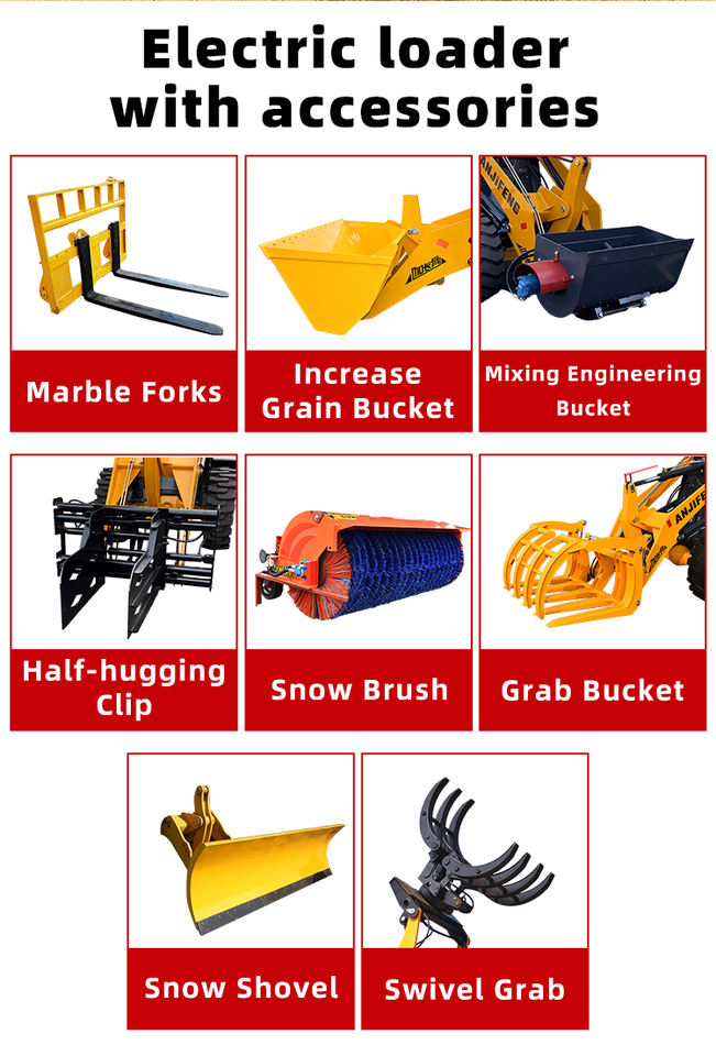 Mini Cargadora de Ruedas Eléctrica 4x4 con Cucharón de 0.3m, Funciona con Batería, para Trabajo Agrícola, Bajo Costo de Mantenimiento