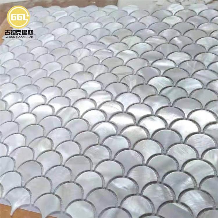 Mosaico de Concha en Forma de Mini Abanico, Mosaico de Escamas de Pescado, Mosaico de Nácar para Pared