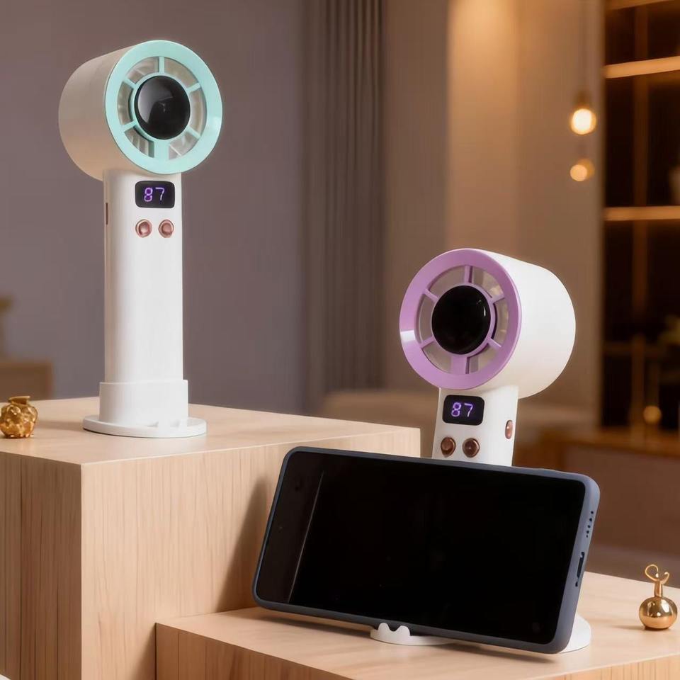 Mini Fan With Digital Display Bladeless USB Rechargeable Portable Desk Fan Three Speed Settings