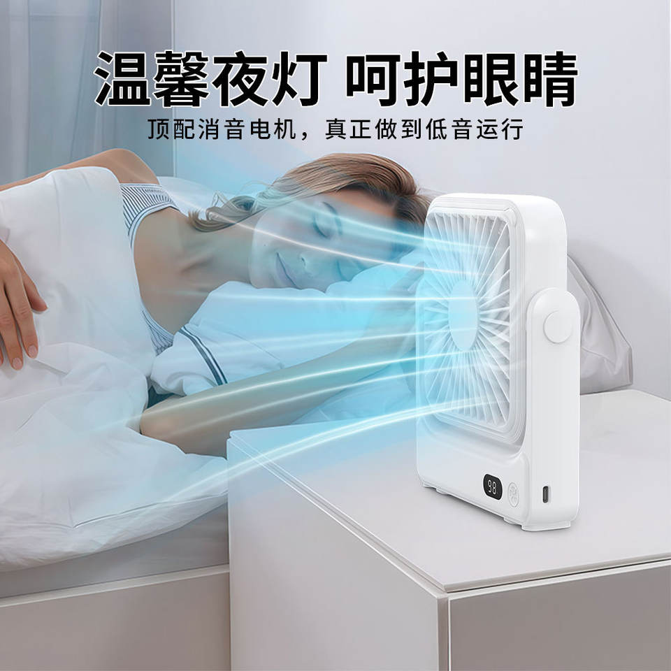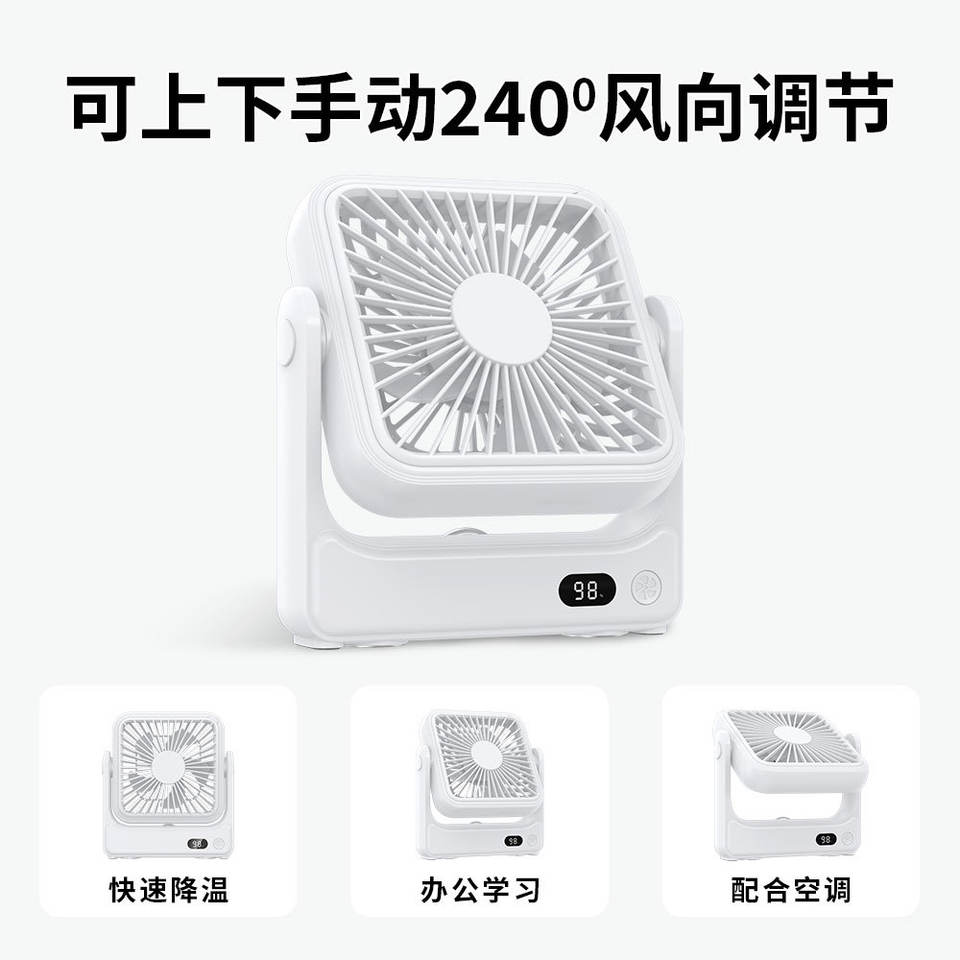 Mini ventilador con pantalla digital, ventilador de escritorio portátil plegable con alimentación USB para uso en el hogar, oficina y exteriores, color blanco