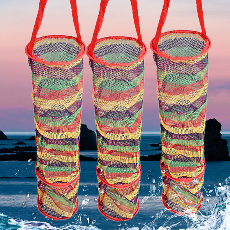 Mini cesta para pescar, jaula plegable de nailon para pesca en arroyos, red multifilamento de 15cm de diámetro para uso en exteriores