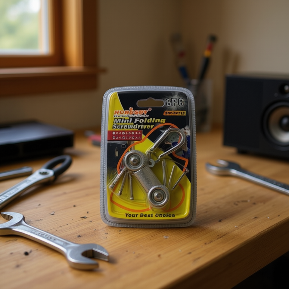 Juego de destornilladores plegables pequeños de 6 piezas con llavero, herramienta compacta para reparaciones de bricolaje