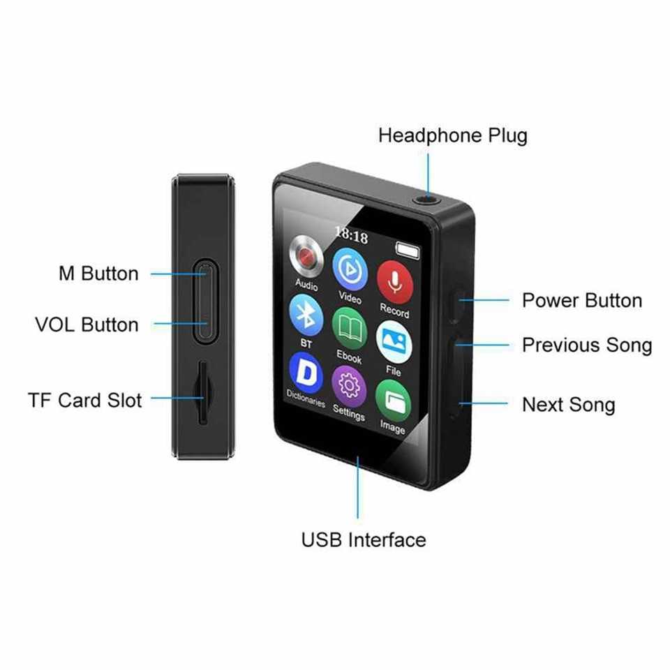 Reproductor MP3 MP4 Mini con Pantalla Táctil Completa, Reproductor de Música con Sonido sin Pérdidas, Radio FM, Libro Electrónico, Grabadora, Función de Diccionario