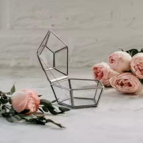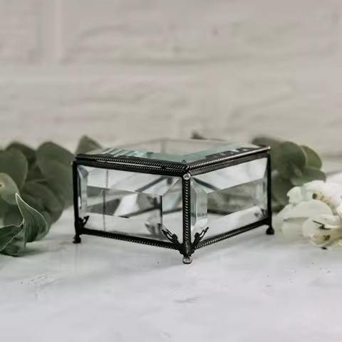 Mini Caja de Anillos de Vidrio con Diseño Geométrico para Anillos de Boda, Collares/Aretes, Último Estilo