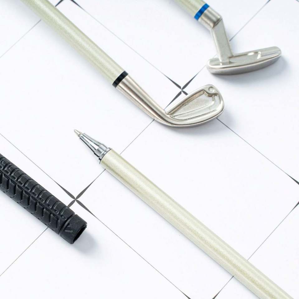 Set de Bolígrafos de Mini Golf - Green de Práctica de Golf de Escritorio con Bolígrafos de Metal con Punta de Bola, Regalos Únicos de Golf para Hombres y Mujeres