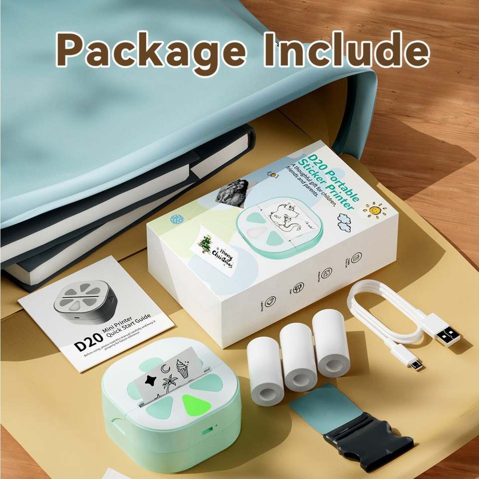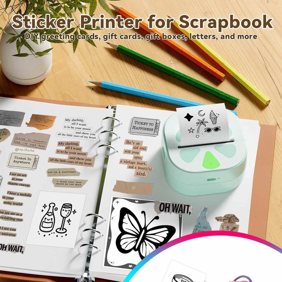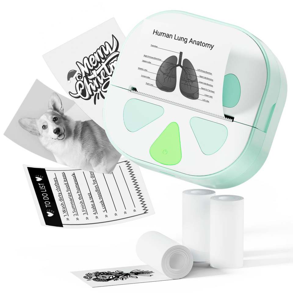 Mini Impresora de Etiquetas HD de 57 mm, Batería de 1300 mAh, Resolución de 203 dpi, Sin Tinta, para Estudiantes, Aprendizaje en Casa, 3 Rollos de Consumibles