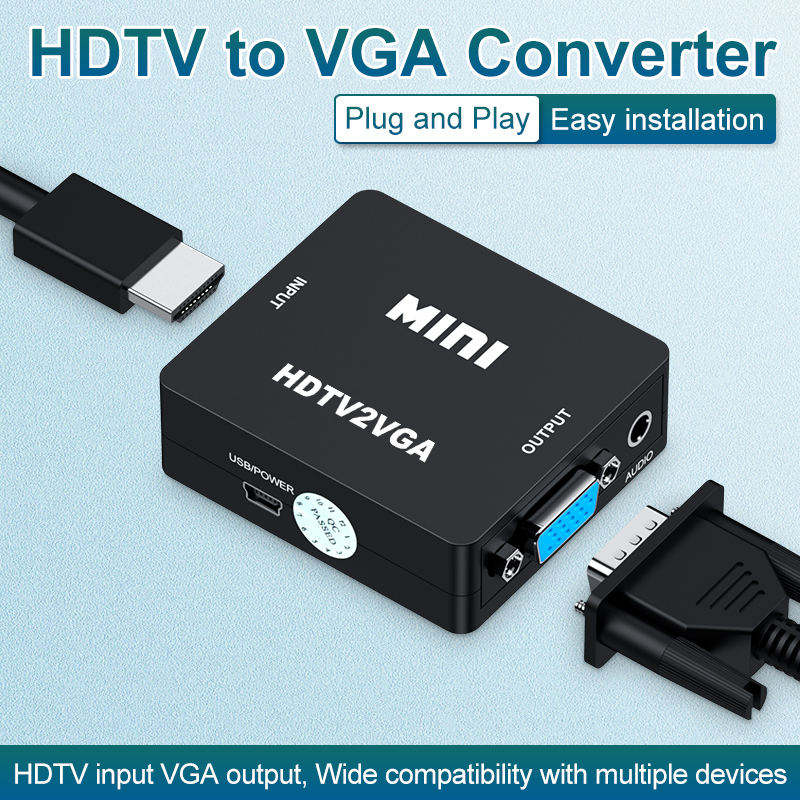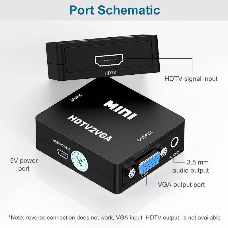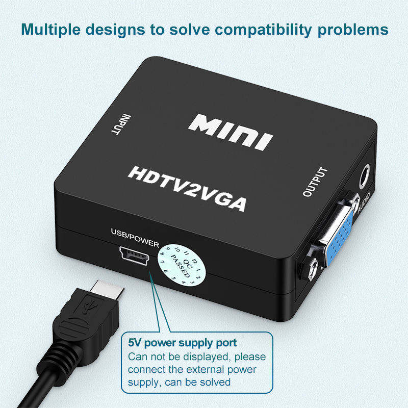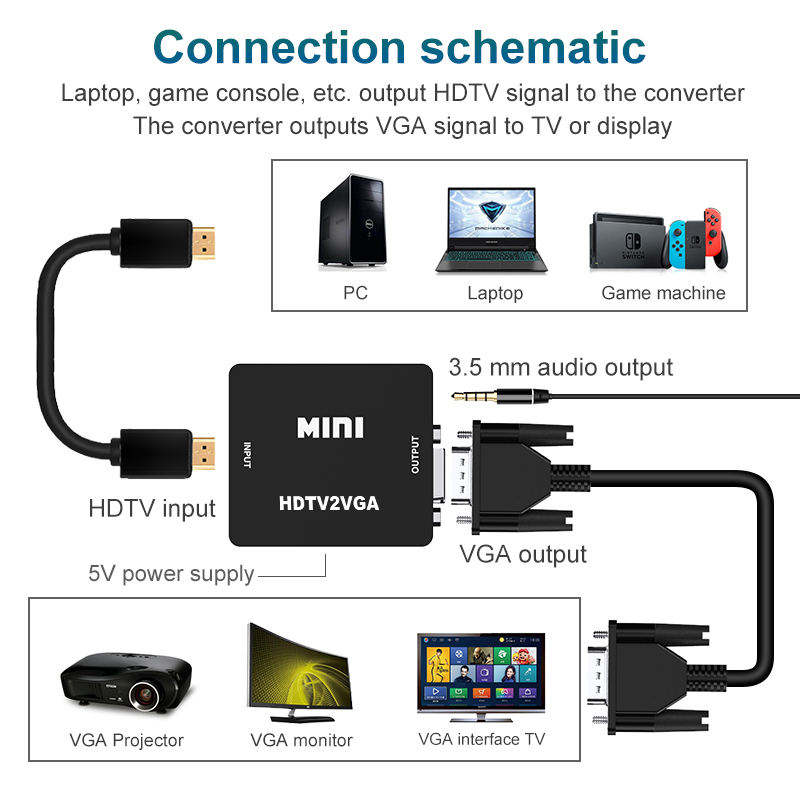 Adaptador convertidor de audio Mini HD a VGA con entrada de audio HD y salida VGA Divisor y convertidor de audio HDTV2VGA