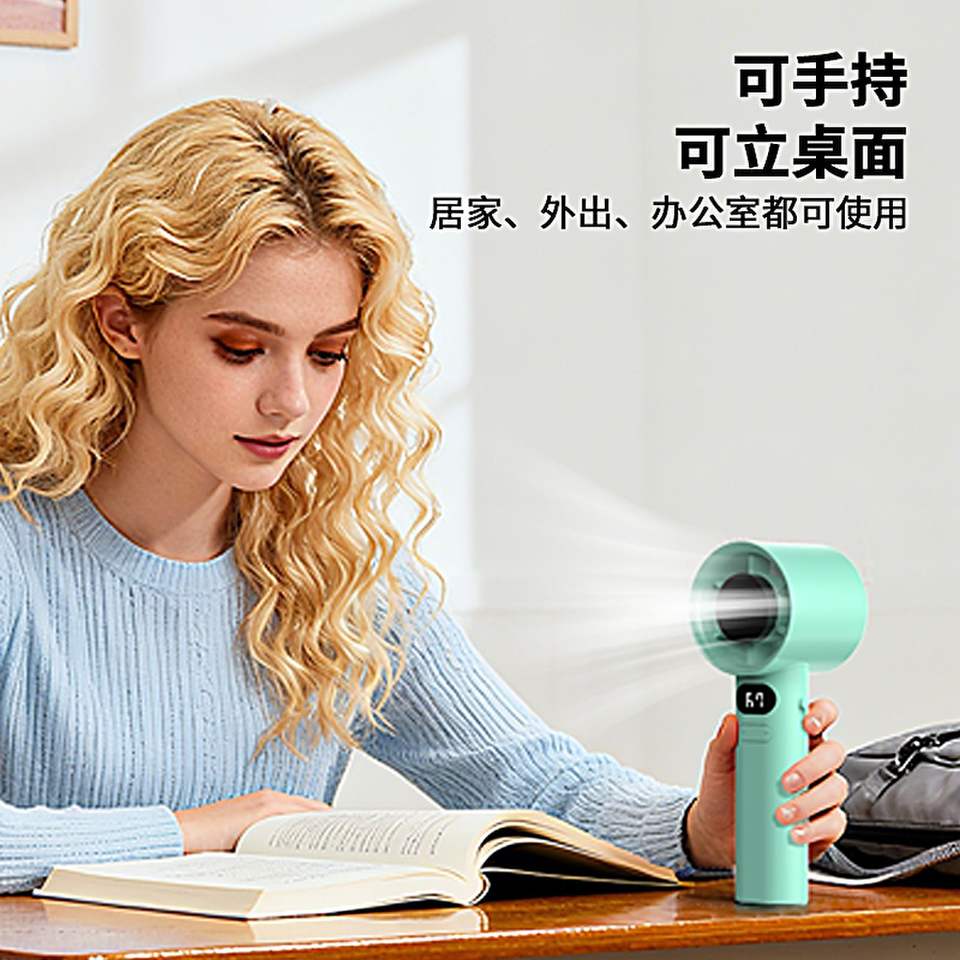 Mini Ventilador de Mano Verde sin Aspas, Recargable por USB, Portátil, Alto Flujo de Aire, Motor DC, Batería de Larga Duración, Regalo Personal