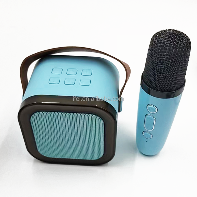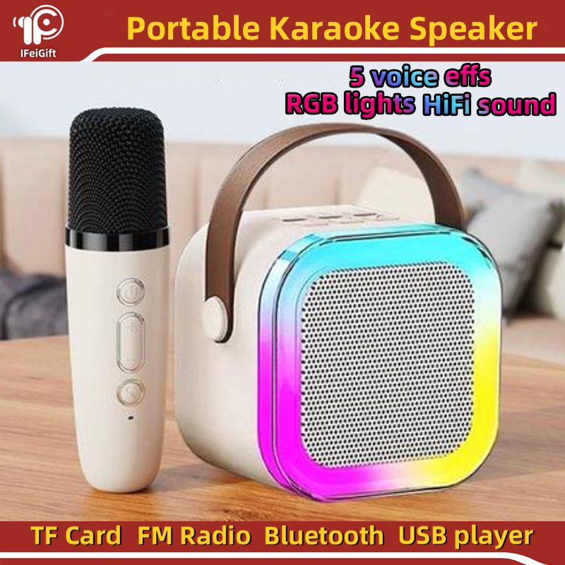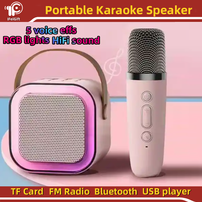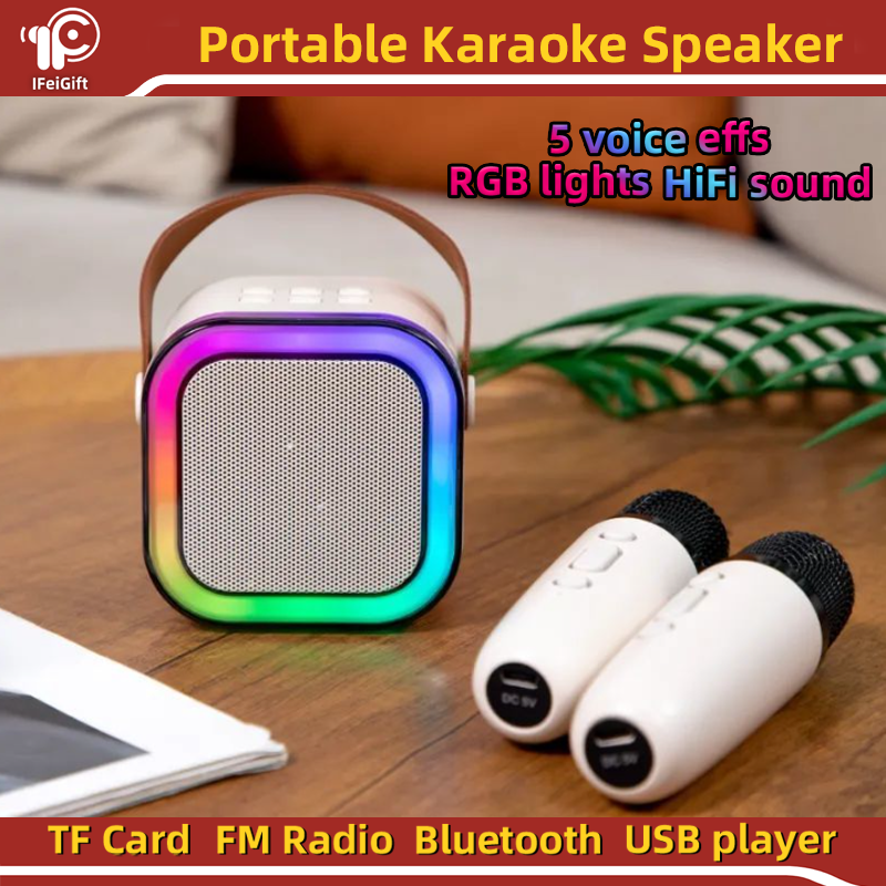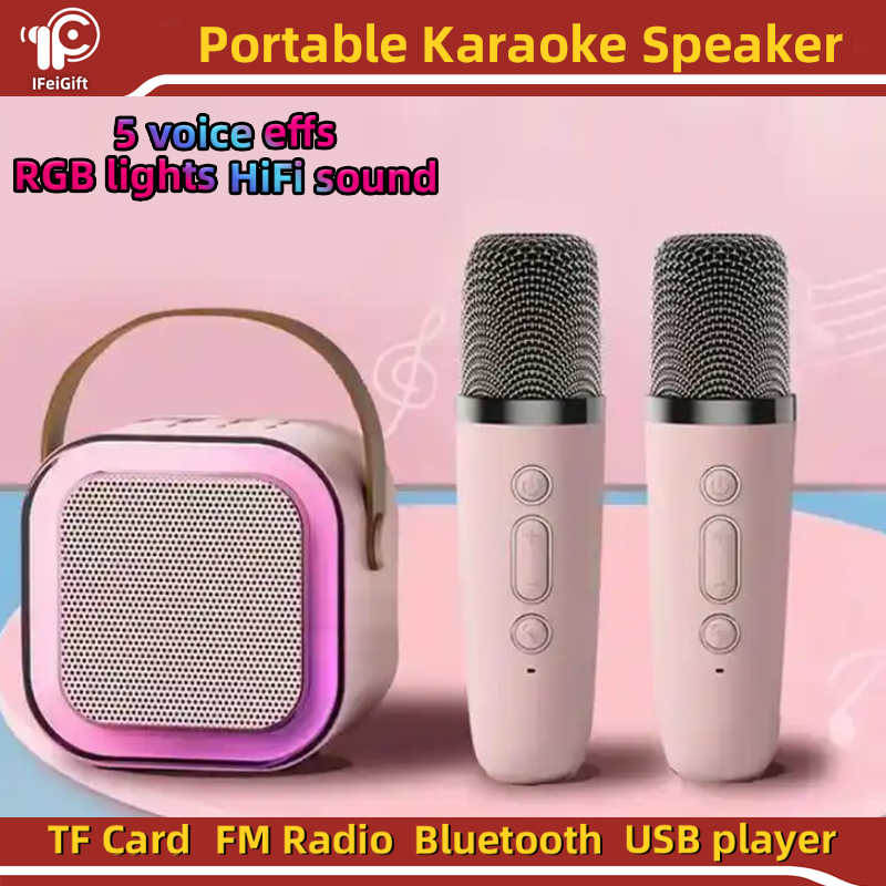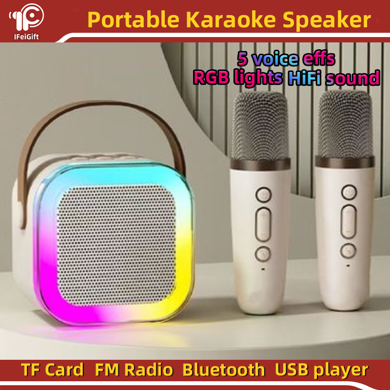 Altavoz mini Handle Karoake Micrófono inalámbrico dual portátil Altavoz pequeño de graves con luces RGB K12