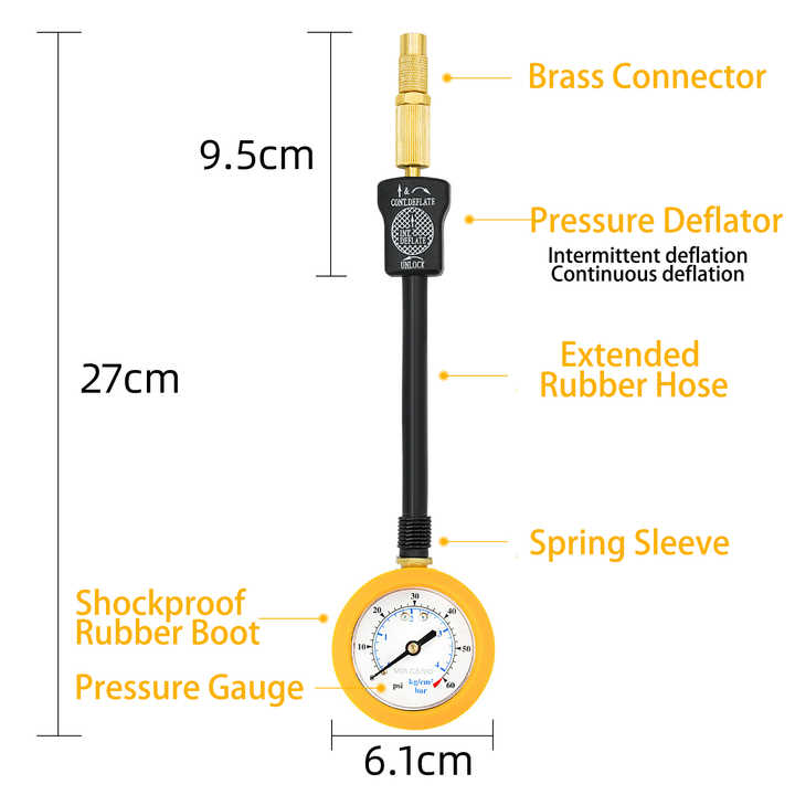 Manómetro de alta precisión para desinflar neumáticos de vehículos, karts, camiones, SUV, semirremolques y autocaravanas.