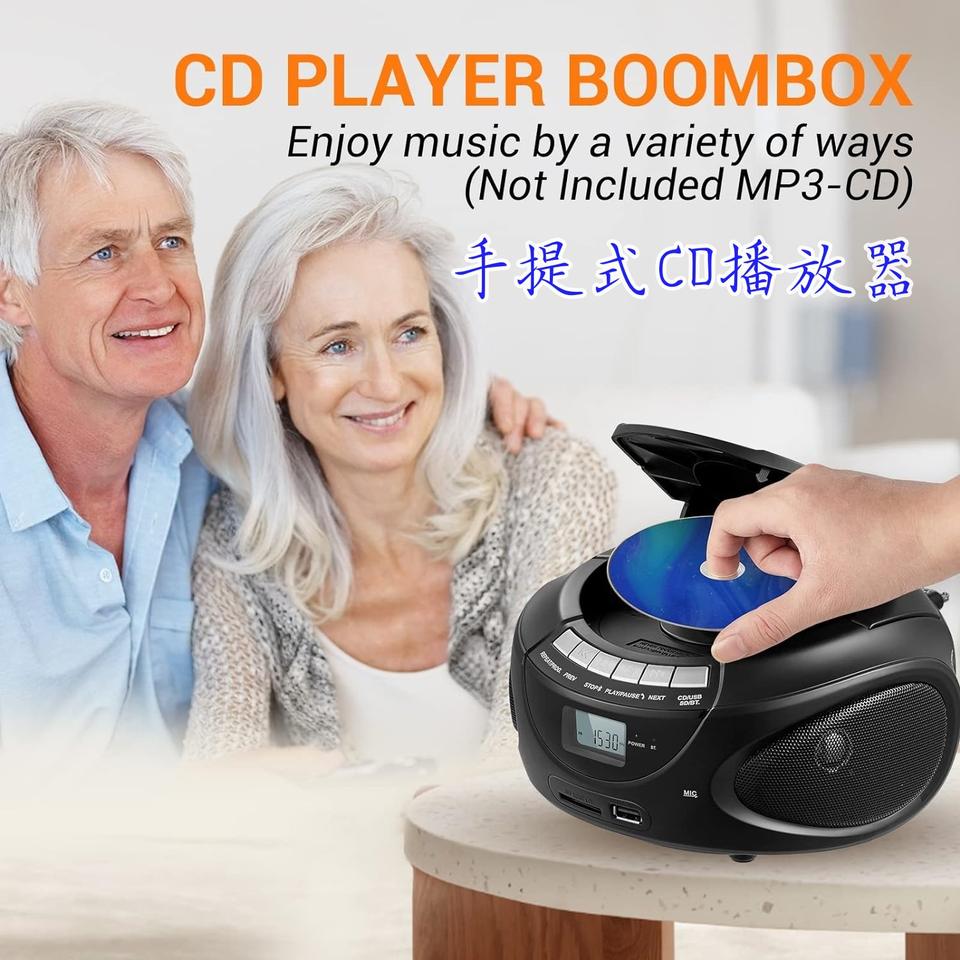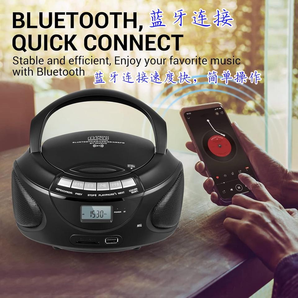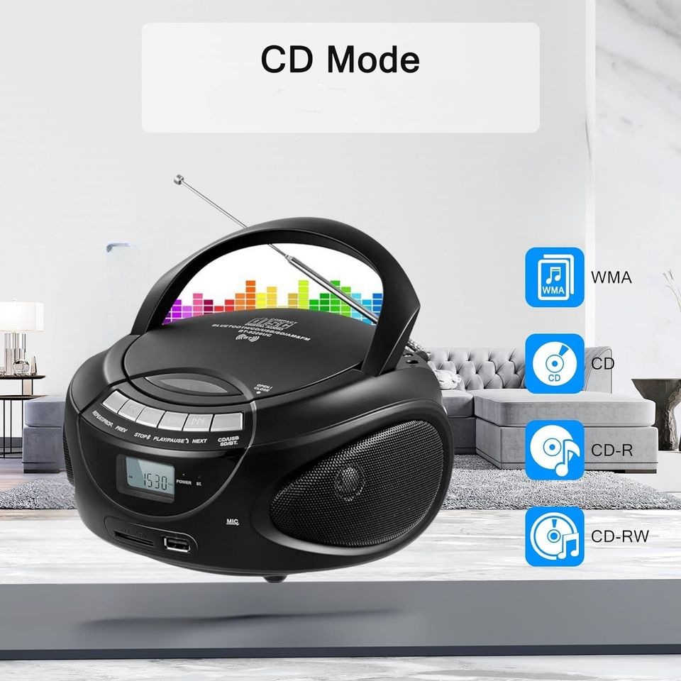 Mini Reproductor de CD Portátil de Alta Fidelidad AM FM con Carga Superior, Altavoz Integrado Compatible, Reproductor de MP3, Pantalla, Radio FM, Boombox