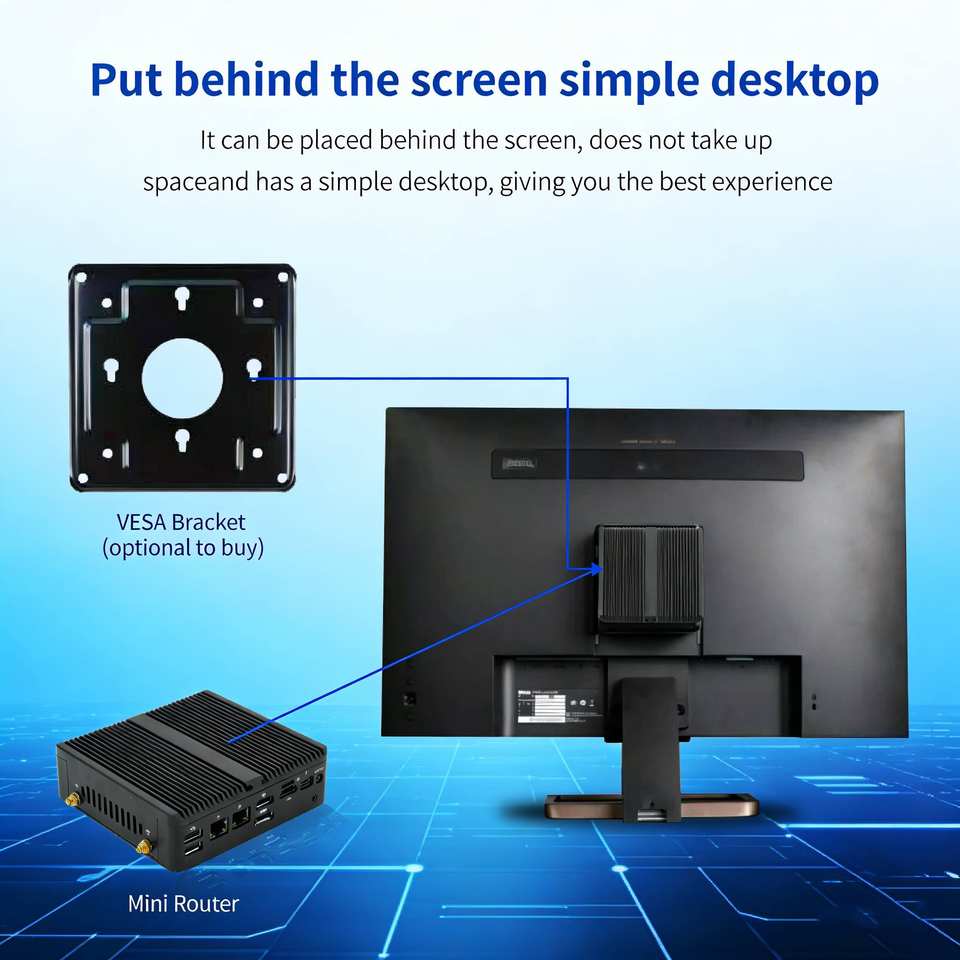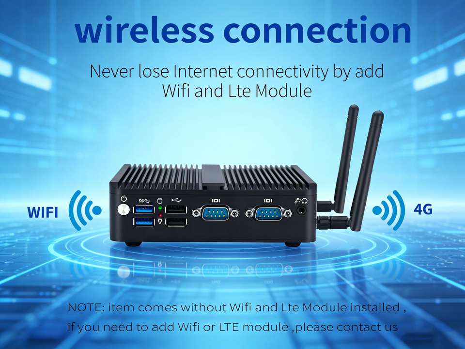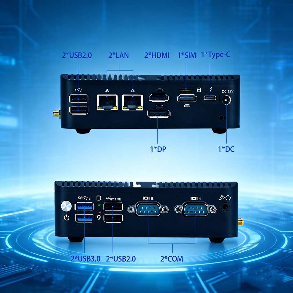Mini PC Industrial con Procesador N100 hasta 3.4GHz, Doble LAN, 2 COM, RS485, Doble HD, 1DP, Pantalla Triple, Señalización Digital, Carcasa de Aluminio