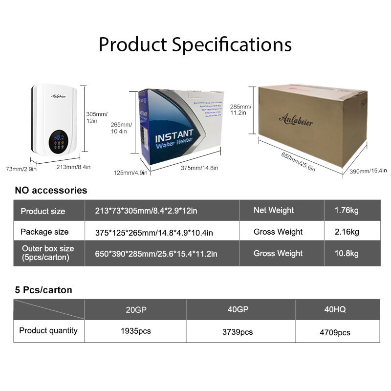 Mini Calentador de Agua Instantáneo de 5500W con Bomba, Pantalla Táctil Inteligente, Calentador Eléctrico sin Tanque para Baño, Ducha y Lavado de Manos