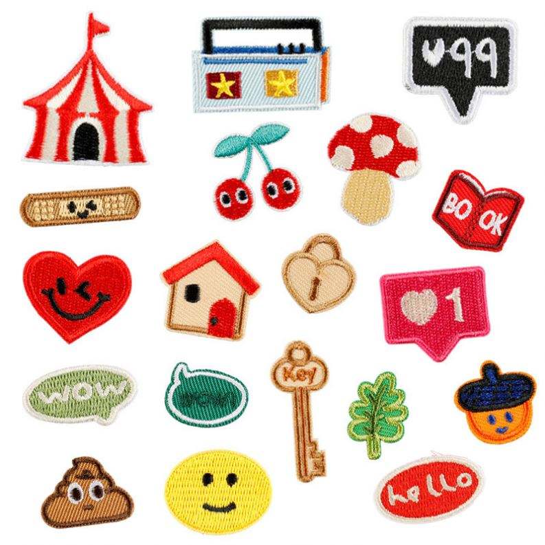 Mini parche termoadhesivo con bordado lindo de casa, tienda de campaña, libro, hoja, llave, caca, cereza y caca para etiqueta de equipaje y decoración de bolsos