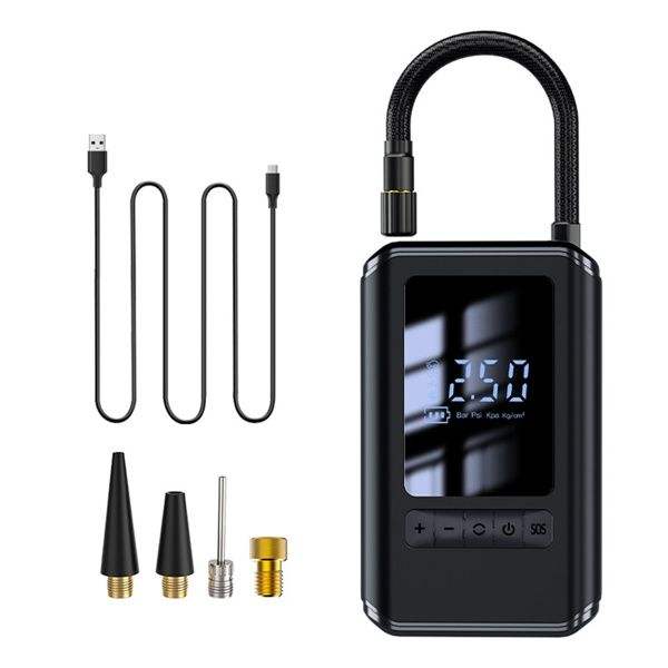 Mini Inflador de Neumáticos con Pantalla LED Digital, Compresor de Aire para Auto con Iluminación LED, Puede Usarse como Banco de Energía, 4 Usos