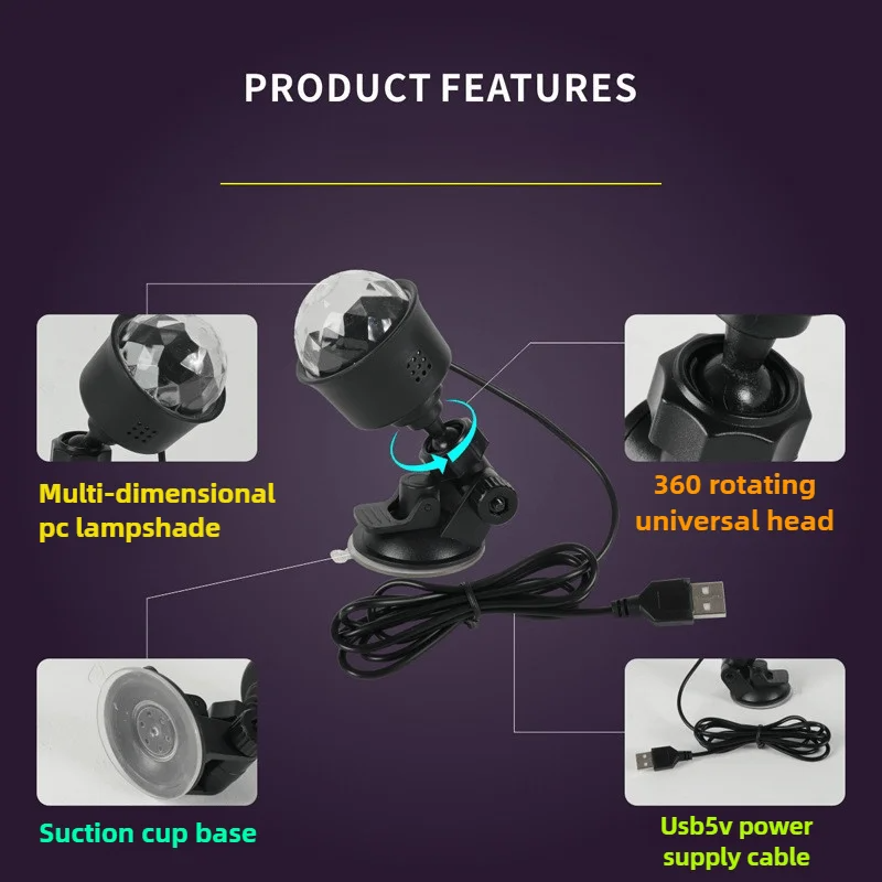 Mini Lámpara LED de Discoteca, Proyector con Alimentación USB, Luz Nocturna RGB con Rotación Automática para Auto, KTV, Decoración de Fiestas Navideñas
