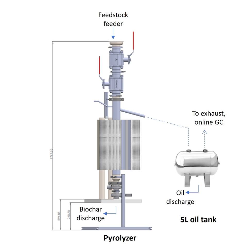 Retorta de pirólisis, unidad de alimentación, Unidad de descarga de carbón, condensador de aceite