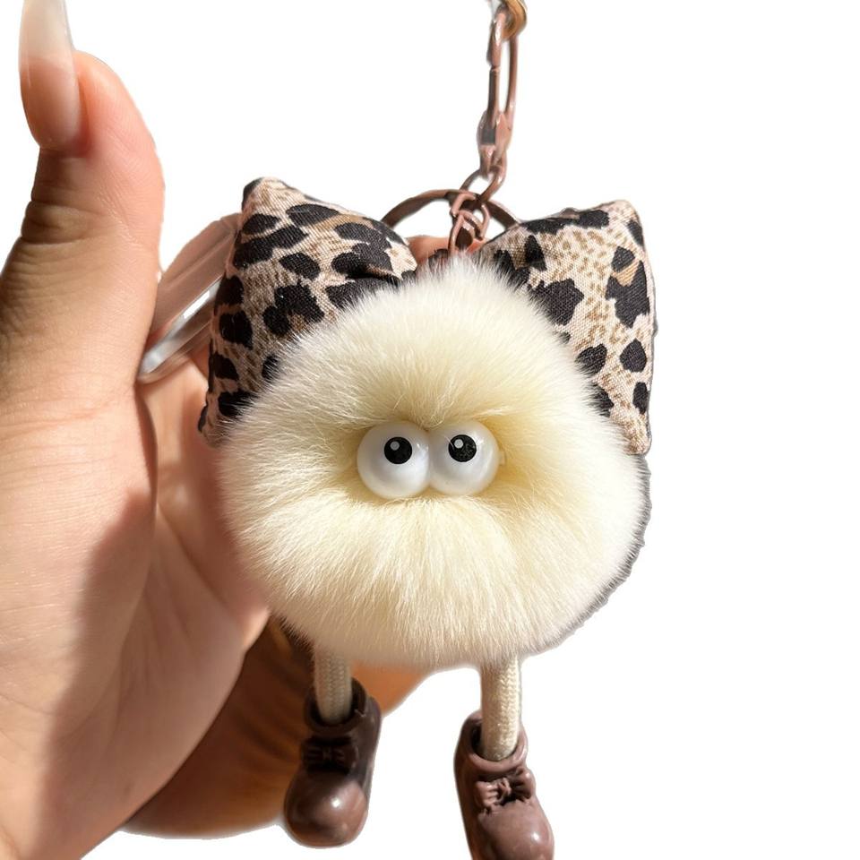 Mini Llavero de Peluche con Forma de Leopardo, Pompón de Pelo de Conejo Rex, Colgante Kawaii, Bola de Pelo Esponjosa, Accesorio para Bolsos, Muñeca