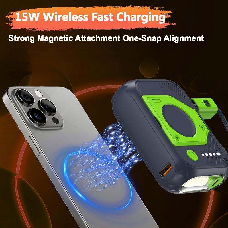 Mini Banco de Energía Magnético de 10000 mAh con Cable Integrado, Carga Rápida, Batería Portátil Compacta, Regalo, Logotipo Personalizado, Tipo-C, Polímero de Litio