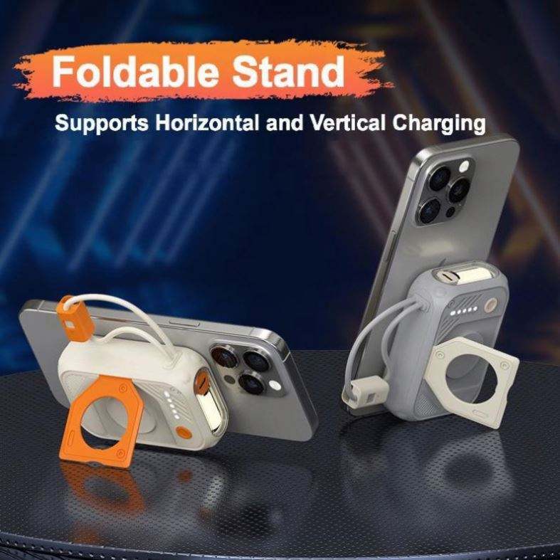 Mini Banco de Energía Magnético de 10000 mAh con Cable Integrado, Carga Rápida, Batería Portátil Compacta, Regalo, Logotipo Personalizado, Tipo-C, Polímero de Litio