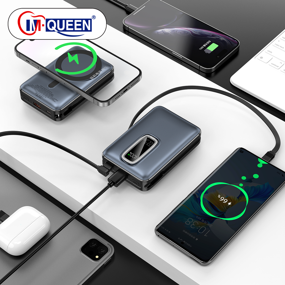 Mini Banco de Energía Magnético Inalámbrico de 20000mAh con Entrada Tipo C, Pd22.5W para Relojes y Auriculares, con Soporte Metálico Plegable y Cable Integrado