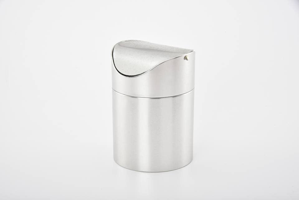 Mini bote de basura de hojalata electrolítico de plata metálica, Impresión de logotipo personalizado, pequeño cubo de basura decorativo para regalo de niños en el hogar