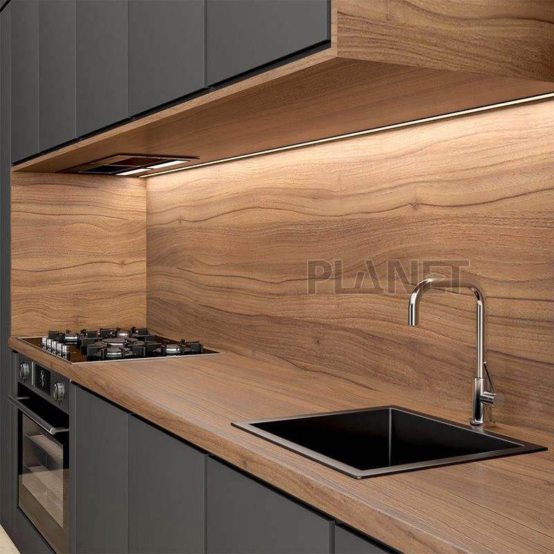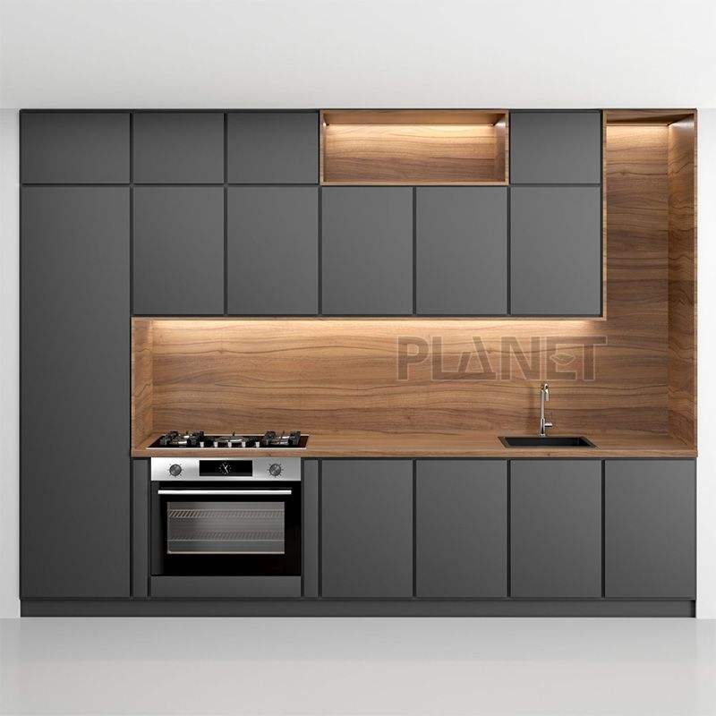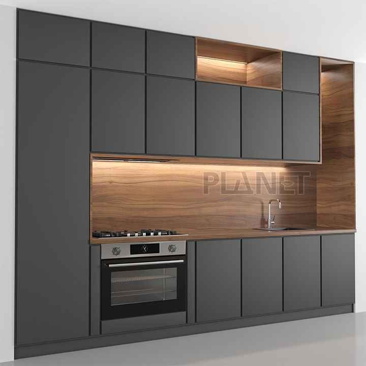 Mini cocina modular Moderno grano de madera Melamina y laca Muebles Baratos Diseño de gabinete de cocina