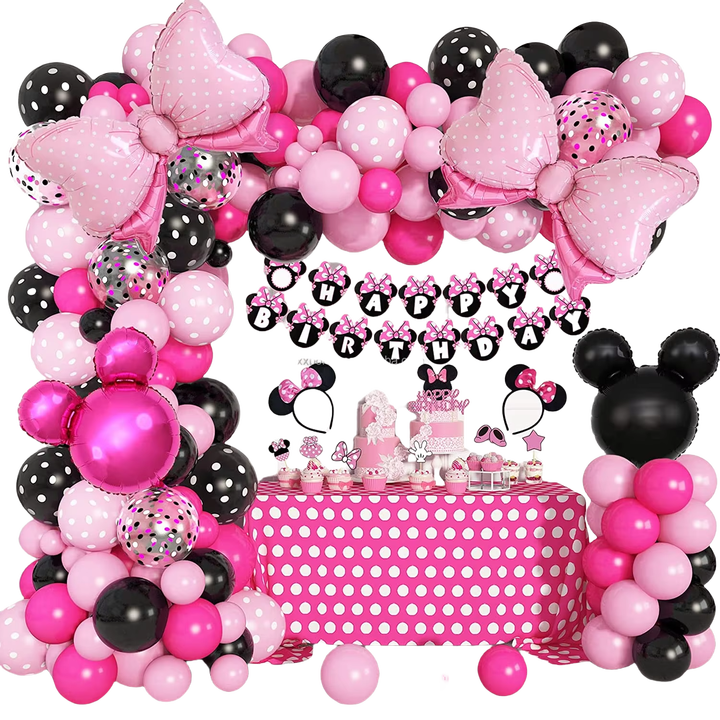 Kit de Guirnalda de Globos de Minnie Mouse, Decoración para Fiestas de Cumpleaños, Pancarta de Feliz Cumpleaños para Decoraciones Temáticas de Minnie
