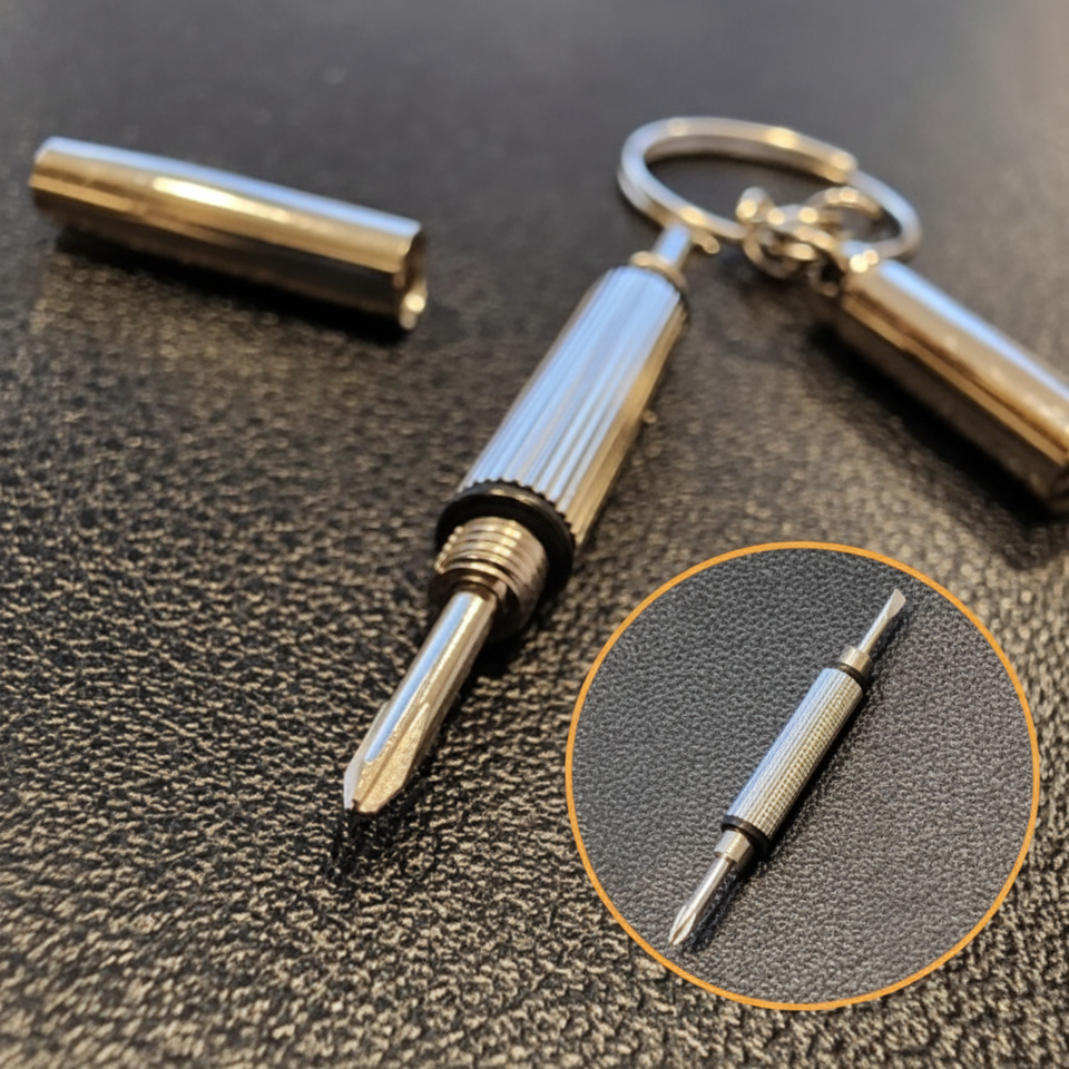 Mini destornillador multiusos con llavero para reparación de gafas y varios otros fines