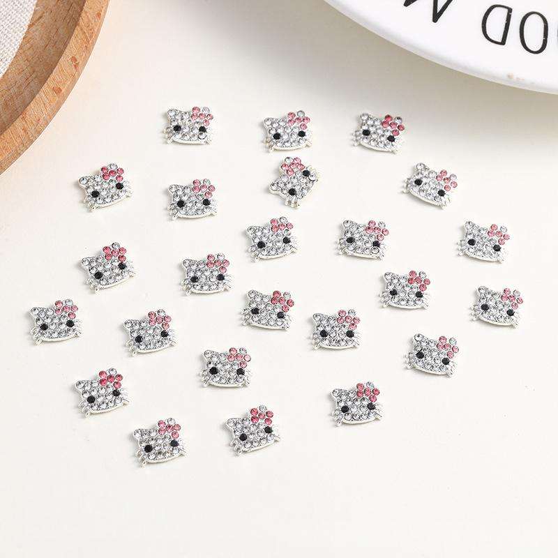 Mini Dijes de Uñas de Aleación Plateada con Pedrería, Dijes de Uñas 3D de Hello Kitty, Cristales Incrustados para Arte de Uñas, Dijes Lindos de Gato KT