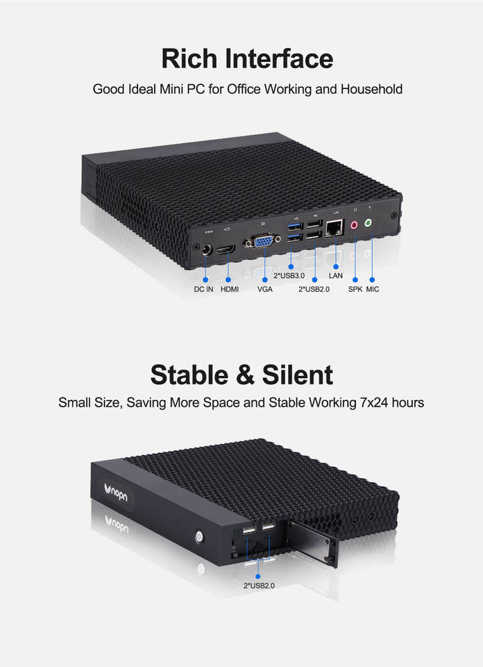 Puertos de E/S:6*USB, 1*VGA, 1*HDMI, 1*RJ45, 1*DC, 1*ENTRADA DE MICRÓFONO, 1*SALIDA DE LÍNEA