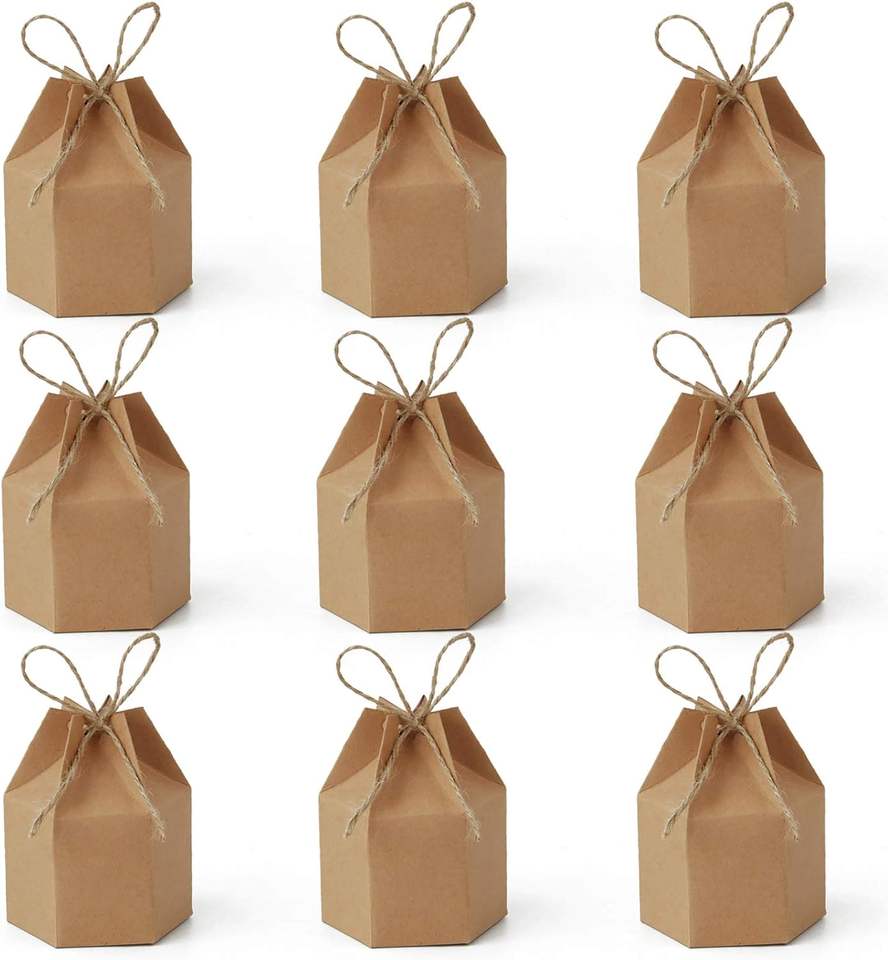 Mini Cajas de Regalo de Papel, Caja de Embalaje Hexagonal de Papel Kraft con Cordel, Envoltura de Regalo para Dulces, Chocolates, Bodas y Fiestas
