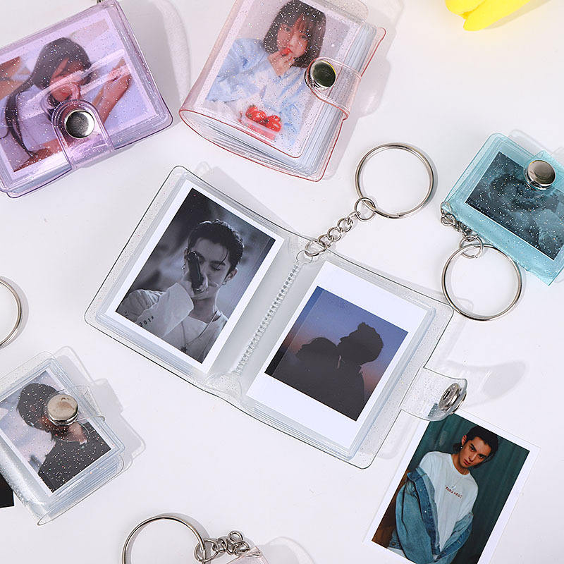 Mini llavero para álbum de fotos, venta al por mayor, marco de fotos acrílico transparente de Pvc de 1-2 pulgadas, marco de inserción de llavero para álbum de fotos
