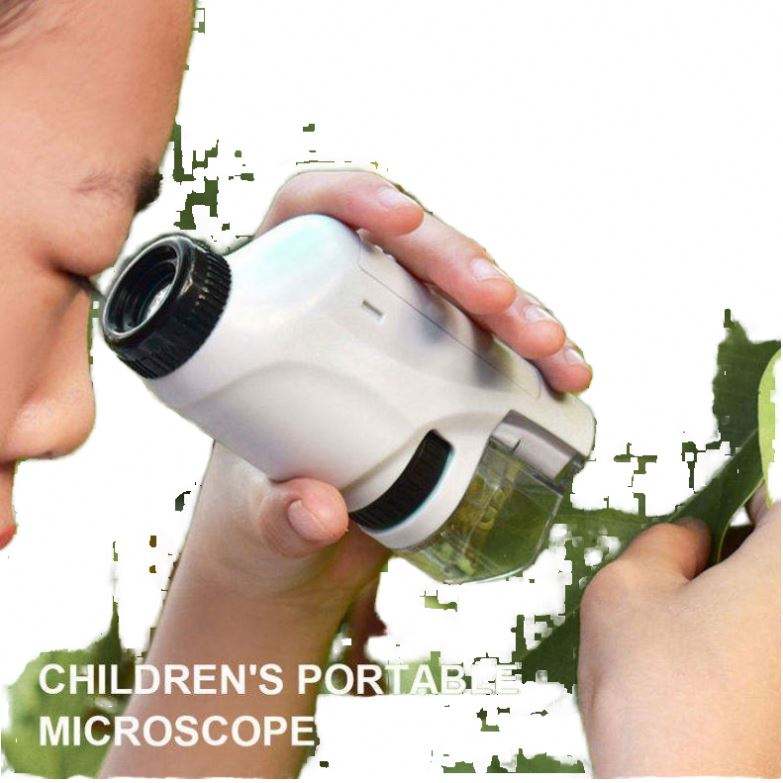 Mini Microscopio de Bolsillo 60-120x, Kit de Laboratorio Portátil con Luz LED, Funciona con Batería, Herramienta Científica para Niños de 5 a 7 Años, Metal y ABS