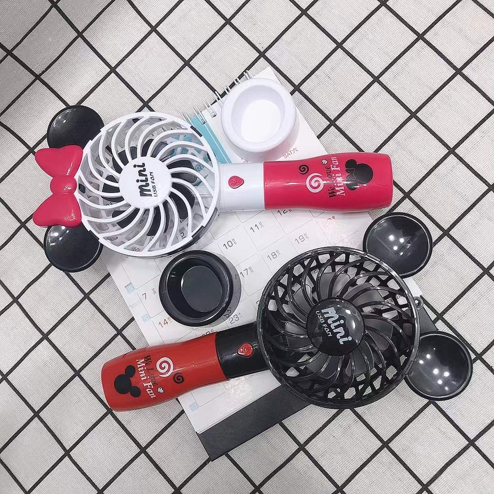Mini Ventilador de Coche Portátil Recargable por USB con Batería de 800 mAh, Tres Velocidades Ajustables, Luz Nocturna, Diseño de Mickey y Minnie