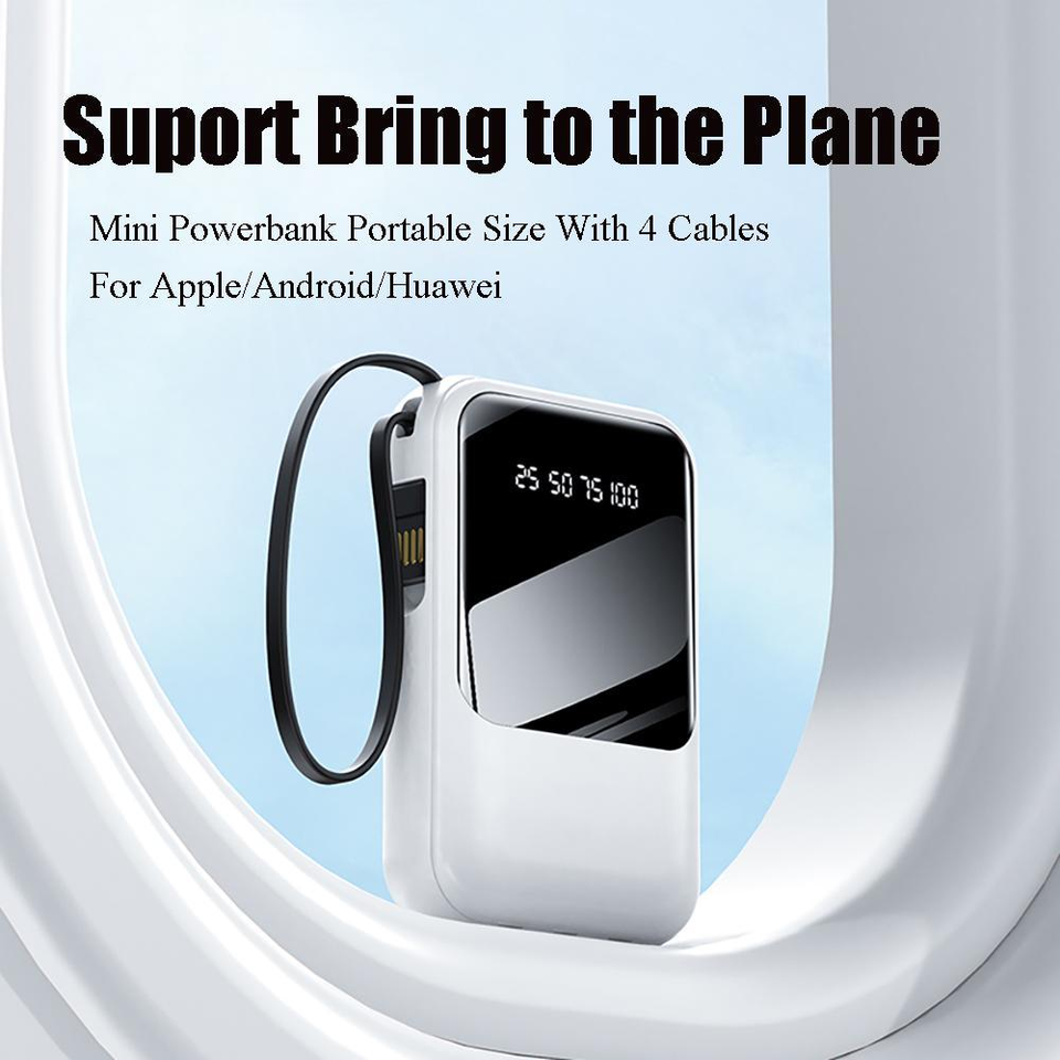 Banco de Energía Portátil de 20000 mAh con Pantalla LED Digital, Cables de Carga Rápida Integrados, Salida Dual Tipo-C y USB, Protección Contra Sobrecargas