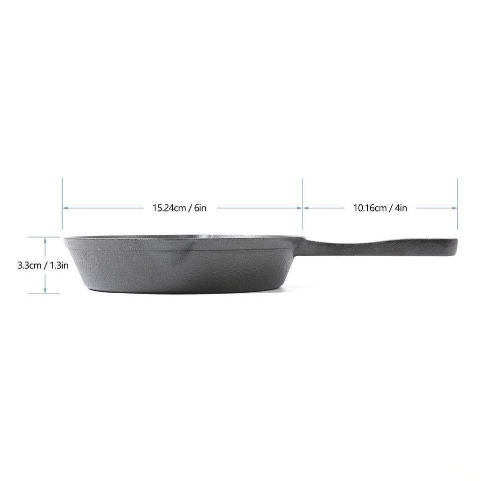 Mini plato pre-sazonado de 6 pulgadas de diámetro. Sartén Redonda de Hierro Fundido para Cocinar y Freír, Sartén de Servir de Hierro Fundido Resistente