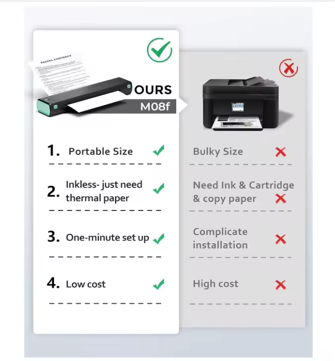 Mini impresora M08F Impresora inalámbrica A4 Impresora térmica portátil Compatible con papel térmico A4 y transferencia de tatuajes
