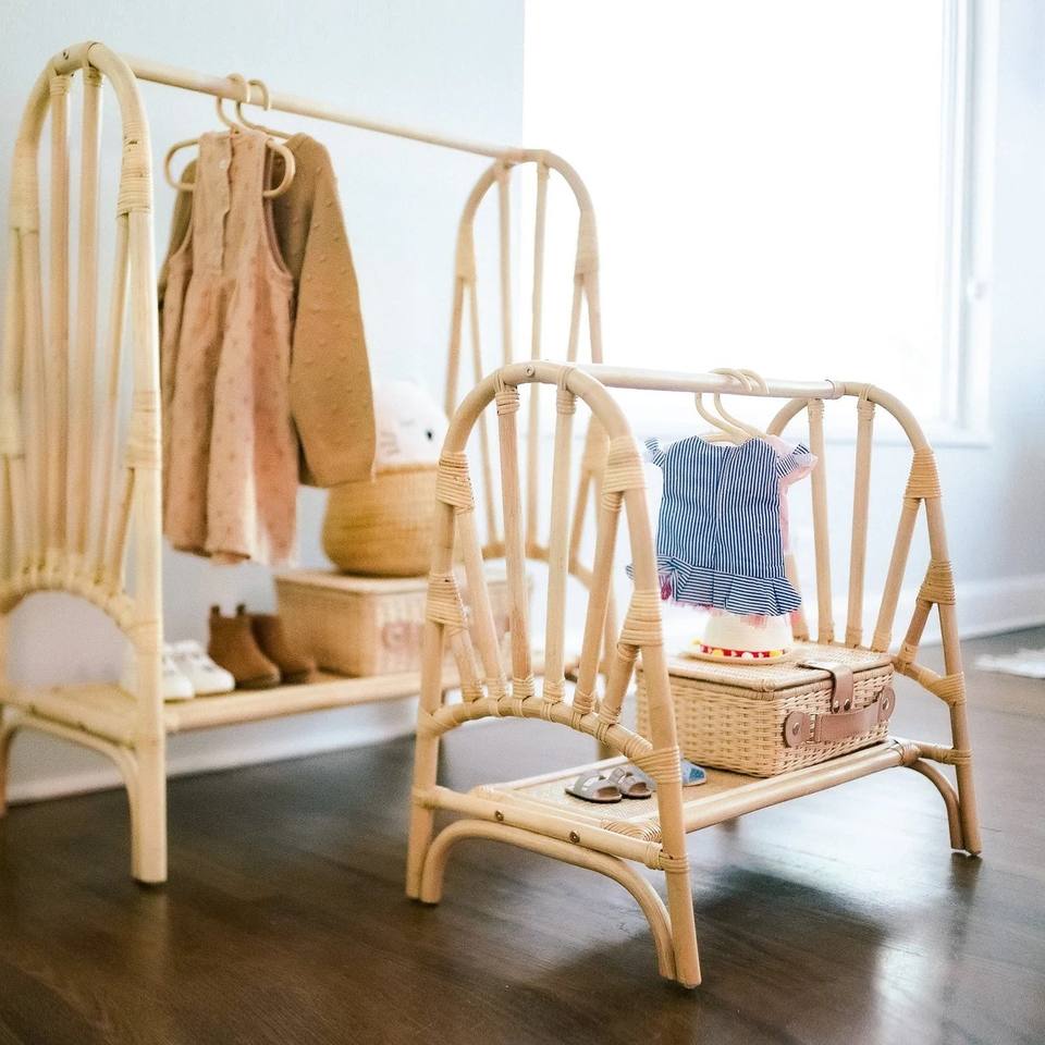 Mini estante de ropa de ratán para niños estante de ratán ecológico para muñecas Almacenamiento de cochecito de bebé hecho a mano en Vietnam