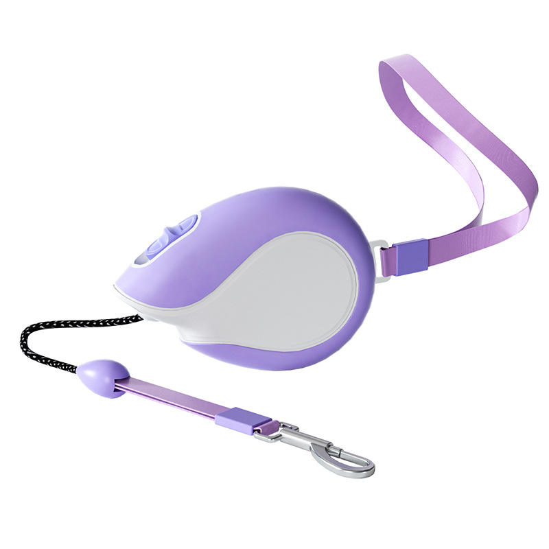 Correa retráctil mini para mascotas, 3 metros de largo, manos libres, para gatos, material plástico morado y naranja